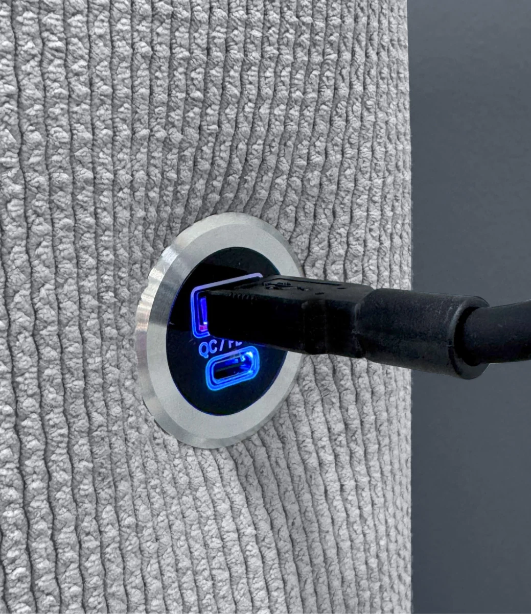 Интерьерная кровать «Milena 2» - трендовая модель выполненная в популярном дизайне с округлыми формами и отдельными пышными вставками с вертикальной прямой геометрией. Возможность дополнительного оснащения: разъем с подсветкой с USB и Type-C разъемами для быстрой зарядки устройств прямо в кровати и LED-светильник с 3 режимами освещения на гибкой основе для максимально комфортного освещения.