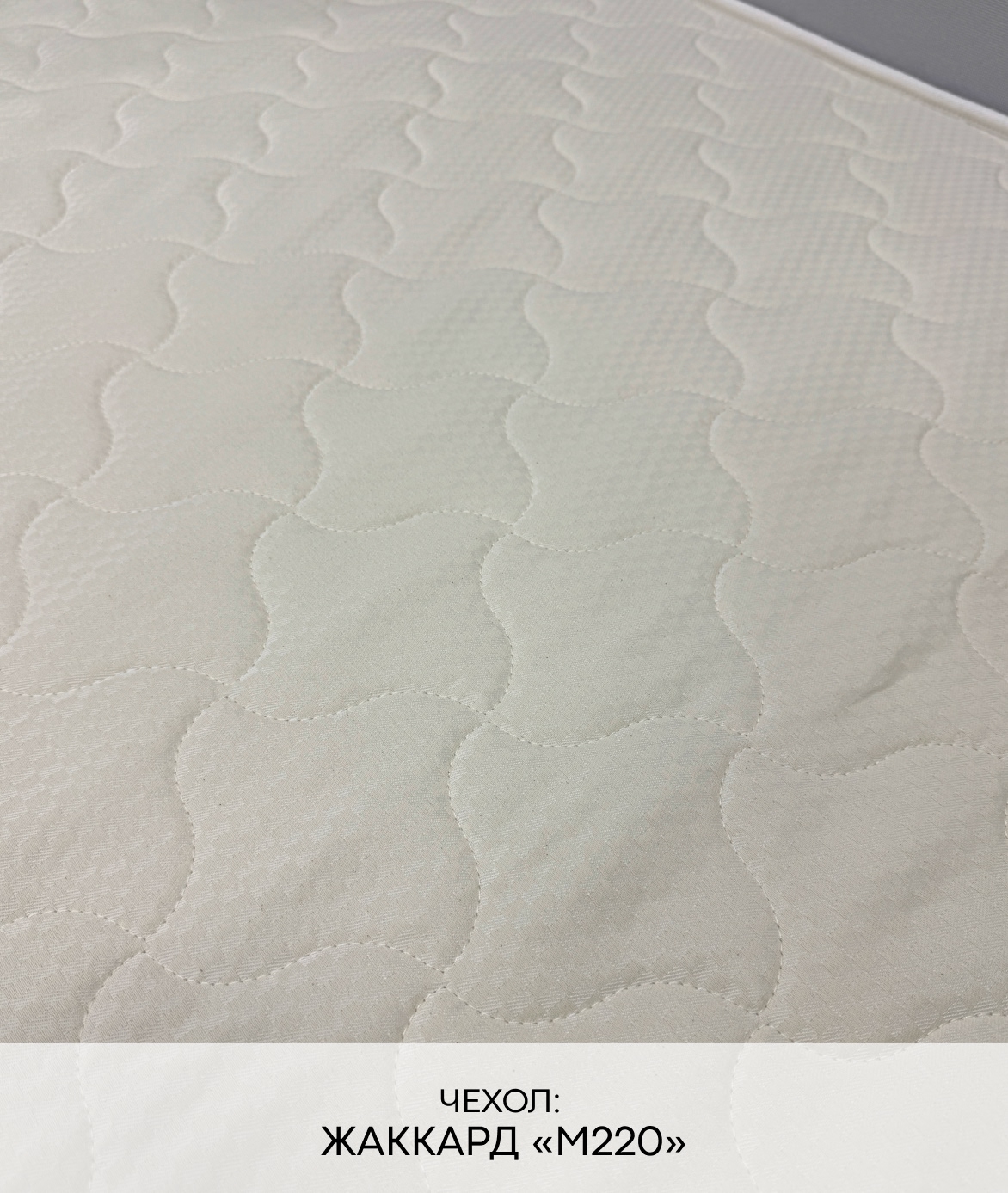 Жаккард «М220» — прочная и износостойкая ткань, которая одинаково хорошо подходит для чехлов детских и взрослых матрасов, а также топперов. Благодаря высокой плотности материал надёжно защищает наполнение от износа, а его плотное переплетение нитей обеспечивает долговечность и устойчивость к растяжению. Ткань сохраняет форму и внешний вид даже при активной эксплуатации, а её гладкая поверхность приятна на ощупь и проста в уходе. Жаккард «М220» обладает воздухопроницаемостью, что способствует поддержанию комфортного микроклимата во время сна.