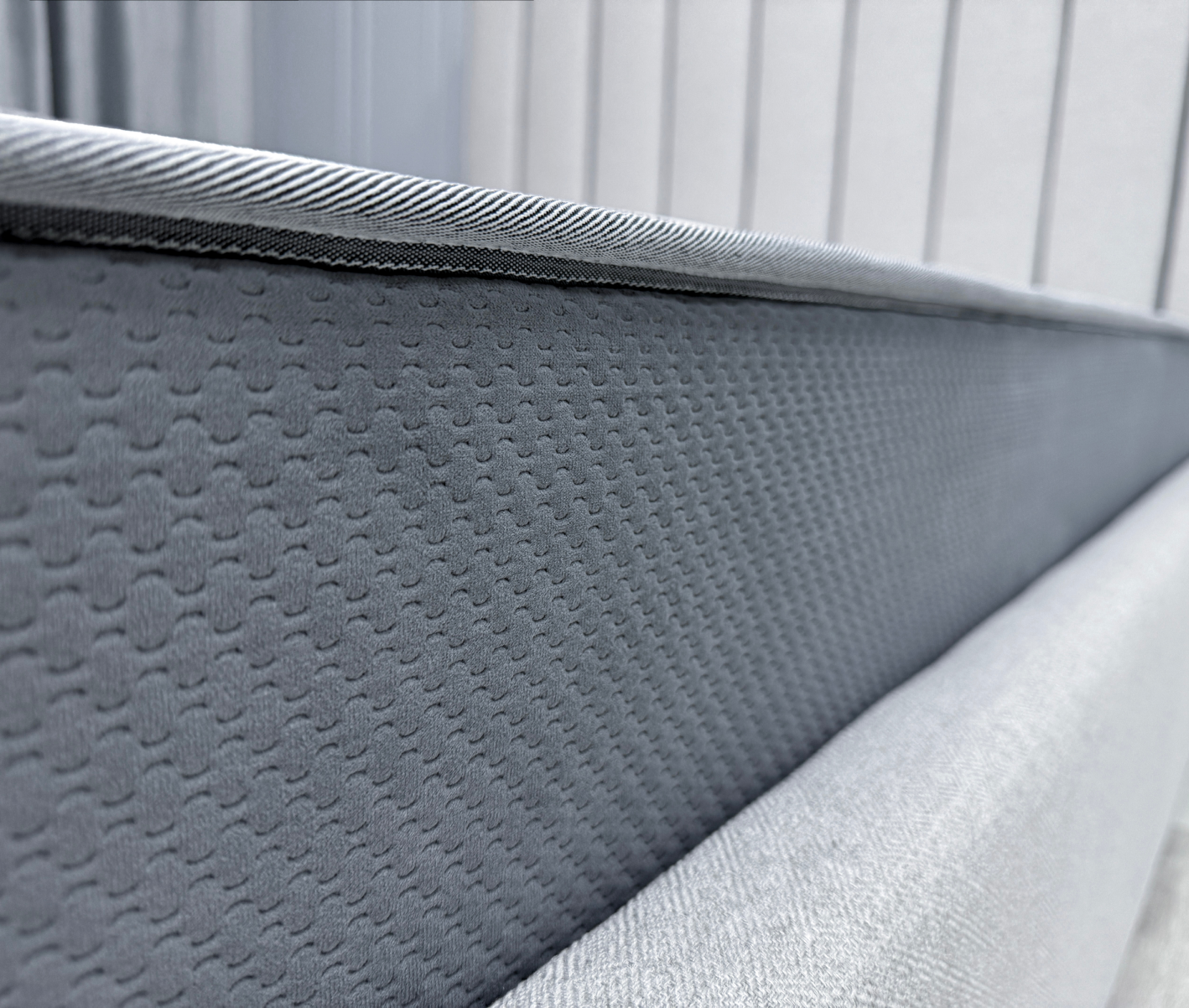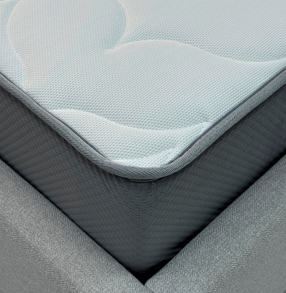 Короб ППУ - Элемент конструкции матраса, усиливающий жесткость пружинных моделей по краям, предотвращая проседание при регулярной нагрузке. Особенно важен при локальных нагрузках на борт матраса (посадка, подъем). Используются два вида пен: стандартная у изголовья и повышенной плотности в боковых зонах.